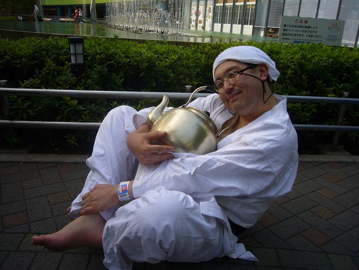 やかんをもって、ごろごろする